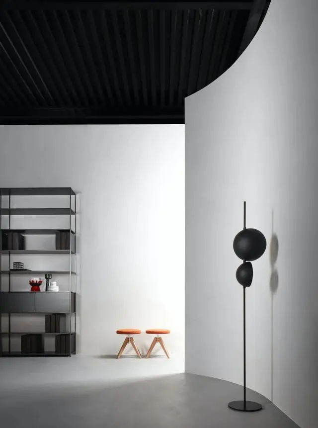 為了鼓勵參觀者觸摸家具并直接與家具本身互動,展示空間的設計符合人的維度,一條曲線環繞空間,將人的維度與代表 MDF Italia 的極簡線條聯系起來。