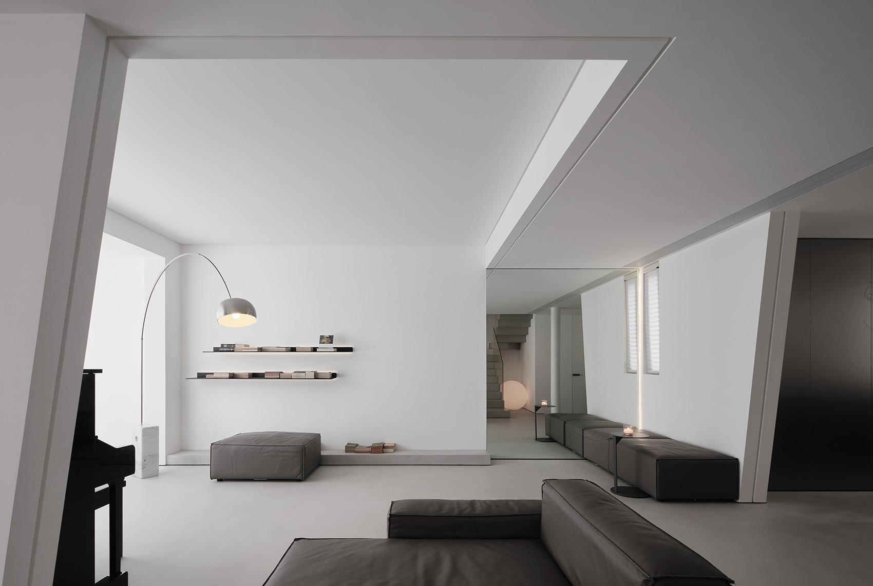 由外向內(nèi)的設(shè)計的同時由內(nèi)向外的設(shè)計,制造必要的張力會讓入口更具魅力。人們平常活動的平面空間之外,還有上、下部分空間所產(chǎn)生的拉力存在于住宅的縱向兩極,而這種拉力正是靠樓梯牽引,也正是上和下的空間變化讓我們的想象力有所去處。上樓或下樓時,以此帶來的視角的改變,離開常規(guī)的水平面。