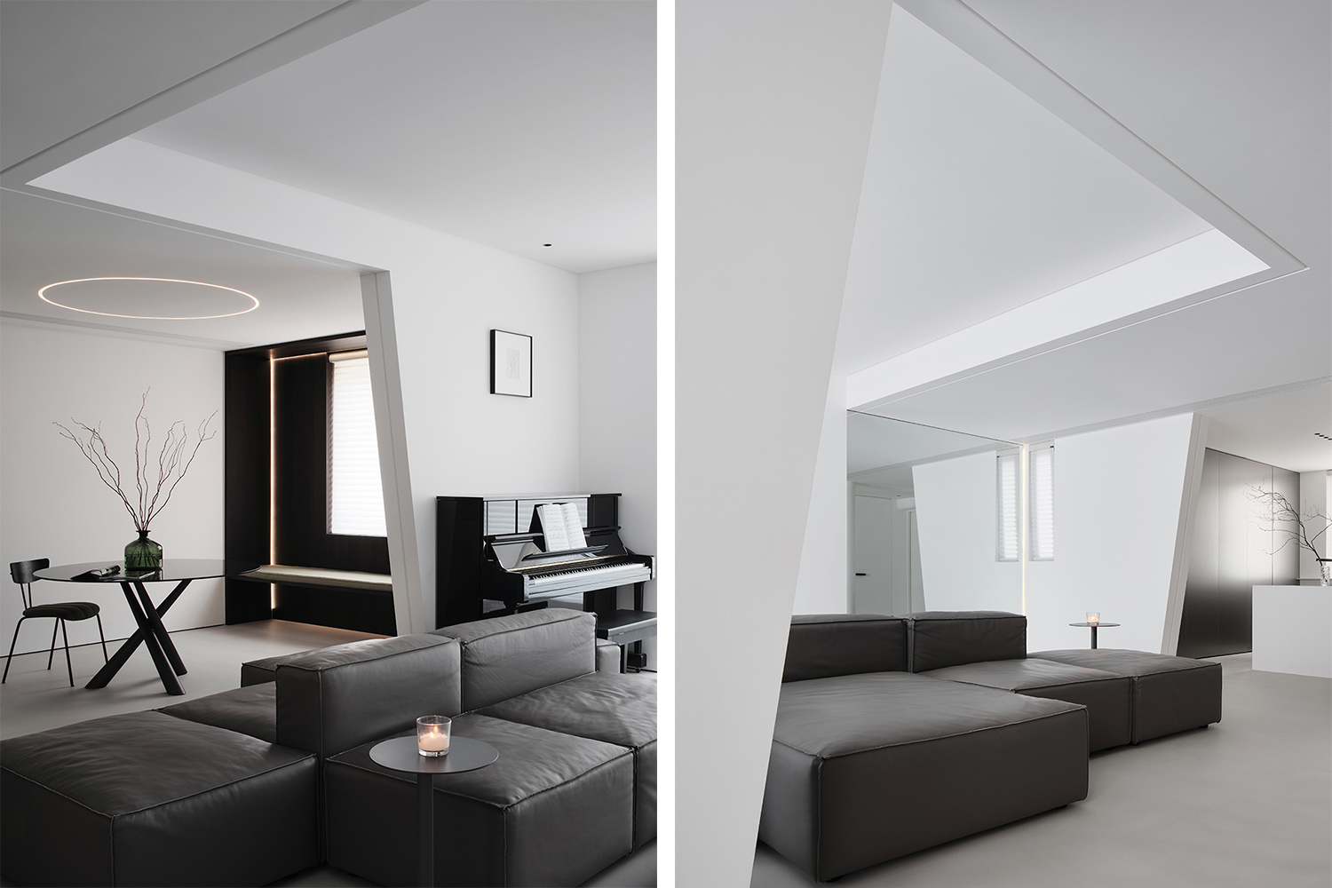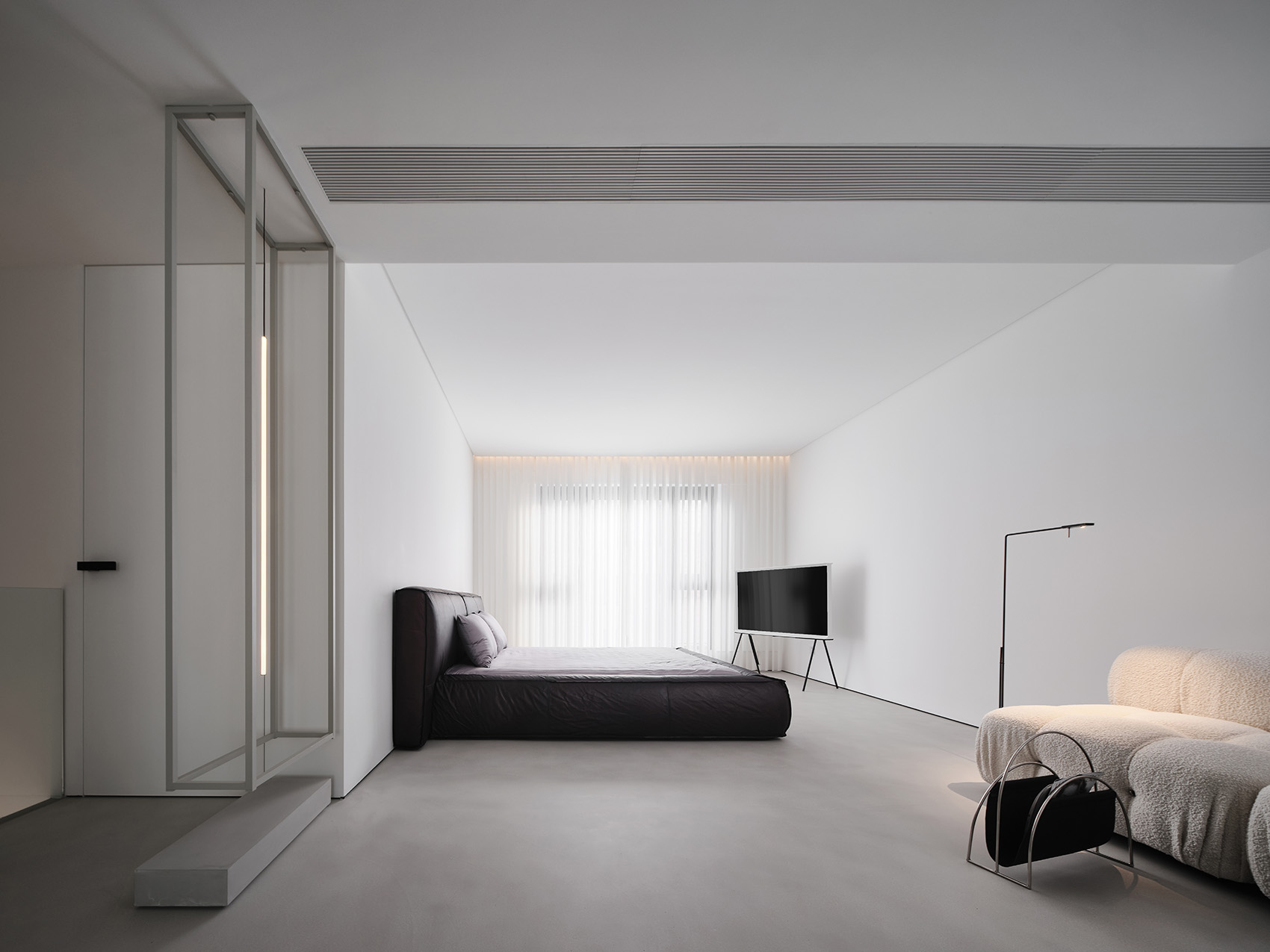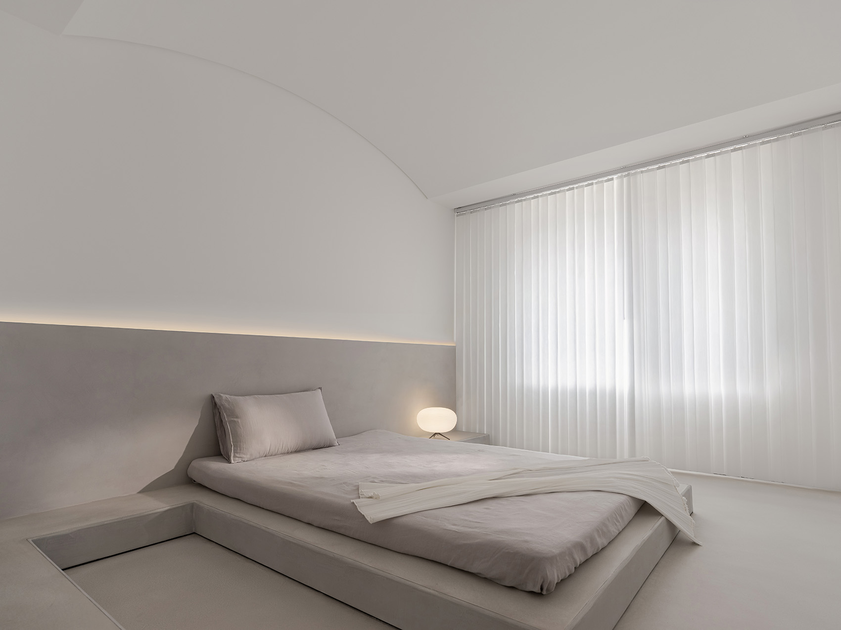 較小的空間使人感到舒適愜意,像鳥兒躺在巢中一樣舒適。人跟空間尺度的關(guān)系中,人們首先考慮的因素是自己,先暗示自己,對于這個功能區(qū)該有怎么樣的容積,身體的感受反饋給大腦,似乎這就該那樣,那就該這樣,但這是否也是我們身體的偏見。“唯有在曠野中,貓才像只貓”開闊的室內(nèi)空間就像寬廣的室外環(huán)境一樣,使人身體和情感雙雙釋放。