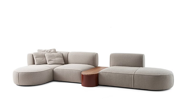 在多個(gè)新推出的產(chǎn)品中,藝術(shù)總監(jiān)本人設(shè)計(jì)的“bowy-sofa”無(wú)疑是最出彩的一款,這款沙發(fā)展現(xiàn)出高品質(zhì)的剪裁技術(shù),同時(shí)利用沙發(fā)模塊的形式展開(kāi)實(shí)驗(yàn),使其具有通用型設(shè)計(jì)的特性。其形態(tài)極具特色,渾圓的扶手直接與靠背相連,靠背則在座位組件之外浮現(xiàn)出來(lái)。圓形、半圓形以及矩形形態(tài)不斷交替轉(zhuǎn)換,創(chuàng)造出體量與圖形輪廓的游戲。