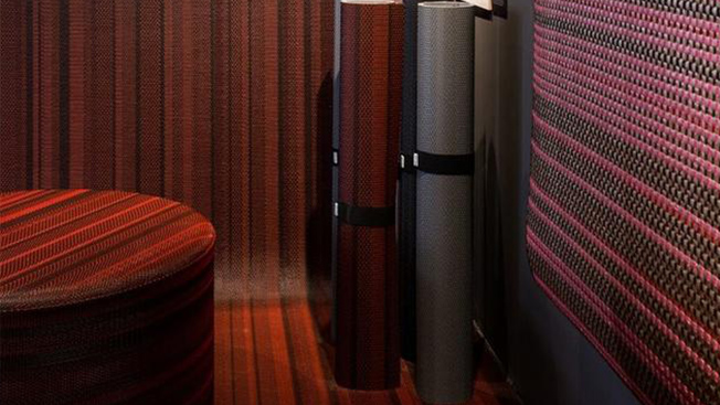 設計師將地板打造出紋理和手工編織的效果,通過編織乙烯基材料結合了黑色、灰色、紅色和藍色等多種顏色,為空間創造出多種可能。
